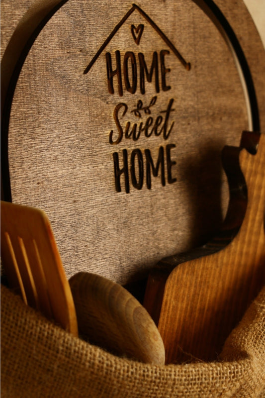 Hoyatap Çuval Hazneli Ahşap Duvar Dekoru- Dekoratif Oyma Home Sweet Home Yazılı Ahşap Çuval Organizer - Duvar Süsü