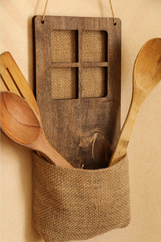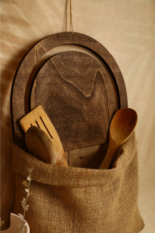 Hoyatap Dekoratif El Yapımı Duvar Süsü-Ahşap Vintage Hasır- Çuval Temalı Organizer - Mutfak Dekoru- Duvar Dekoru