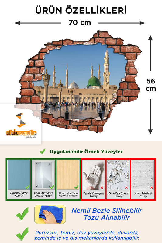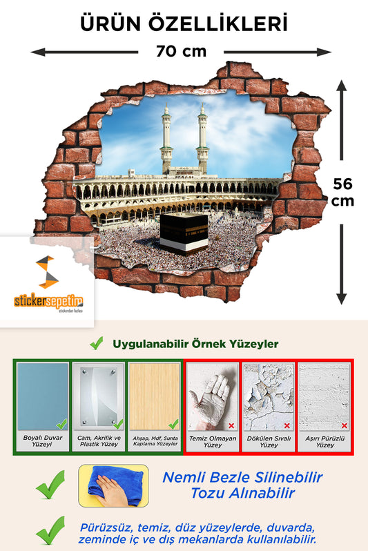 Kırık Tuğla Desen Kabe, Mescid-i Haram Üç Boyutlu 3D Dekoratif Duvar Sticker