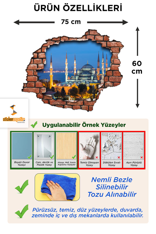 Kırık Tuğla Desen Sultan Ahmet Cami Üç Boyutlu 3D Dekoratif Duvar Sticker