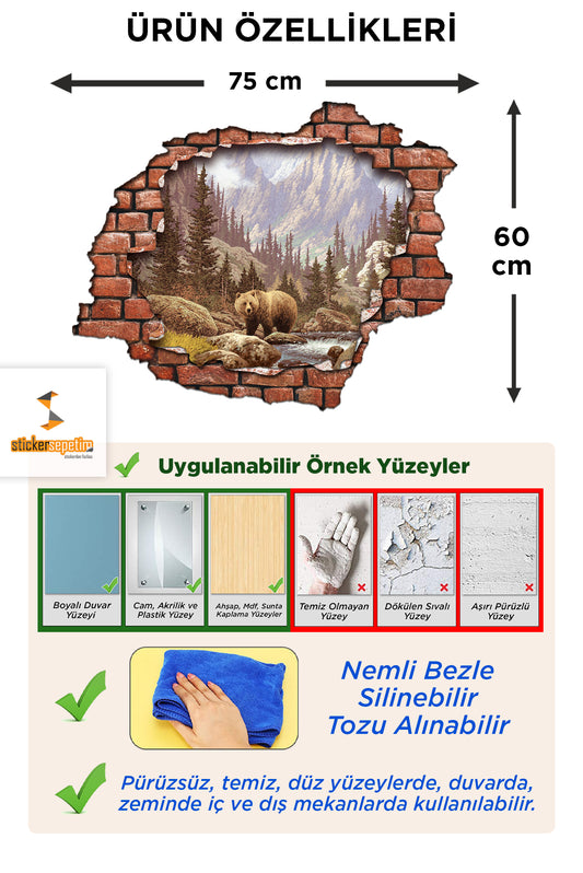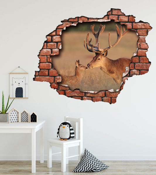 Kırık Tuğla Desenli Geyik Maznara 3D Duvar Sticker