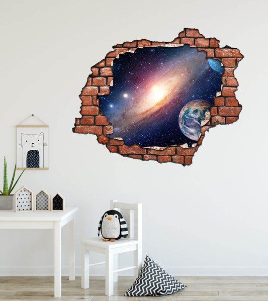 Kırık Tuğla Desen Samanyolu Galaksi Uzay Boşluğu 3D Duvar Sticker