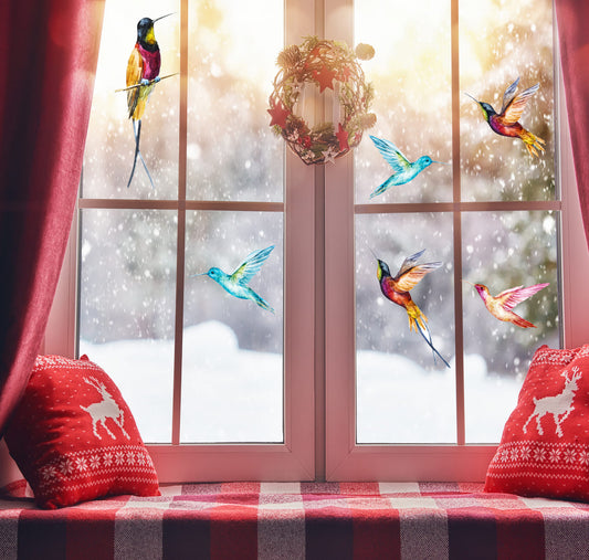 Renkli Kuşlar Suluboya Cam, Pencere, Duvar Sticker