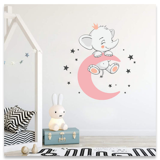 Pembe Aydan Sallanan Sevimli Yavru Fil Yıldızlar Çocuk Odası Duvar Sticker