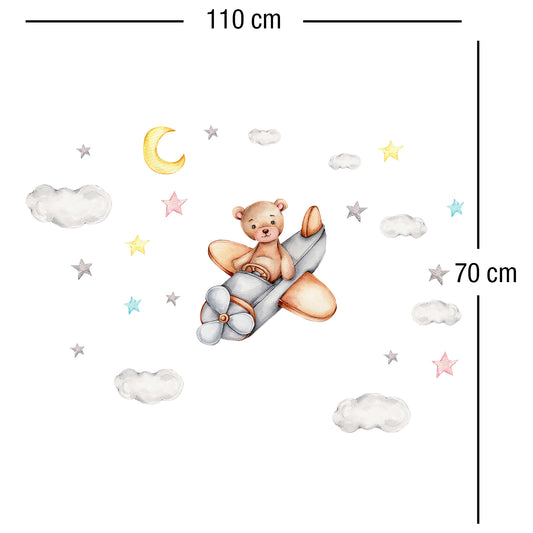 Pilot Ayıcık Bulut ve Yıldızlar Çocuk Odası Duvar Sticker