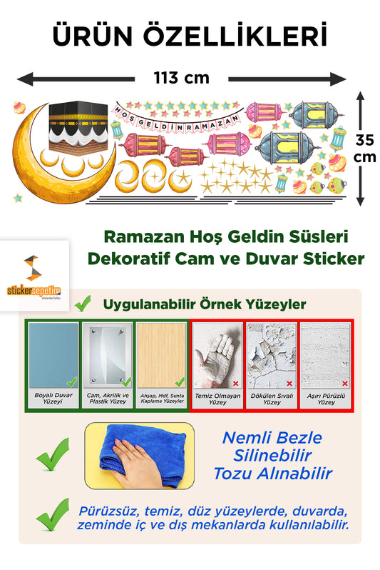Ramazan Hoş Geldin Süsleri Dekoratif Cam ve Duvar Sticker Seti