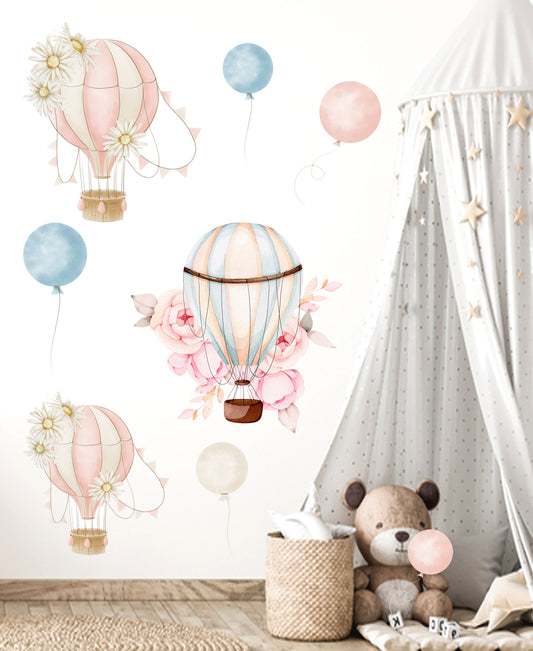 Renkli Çiçekli Retro Balonlar Çocuk Odası Duvar Sticker Seti - Boho Tarzında İskandinav Duvar Süsü