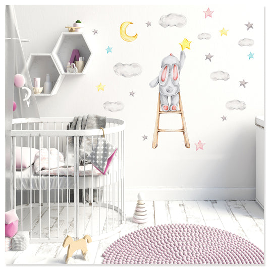 Sevimli Tavşan Bulutlar ve Yıldızlar Çocuk Odası Rüya Duvar Sticker