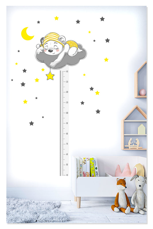 Sevimli Uyuyan Ayıcık Ay Bulut ve Yıldızlar Boy Ölçer Çocuk Odası Duvar Sticker
