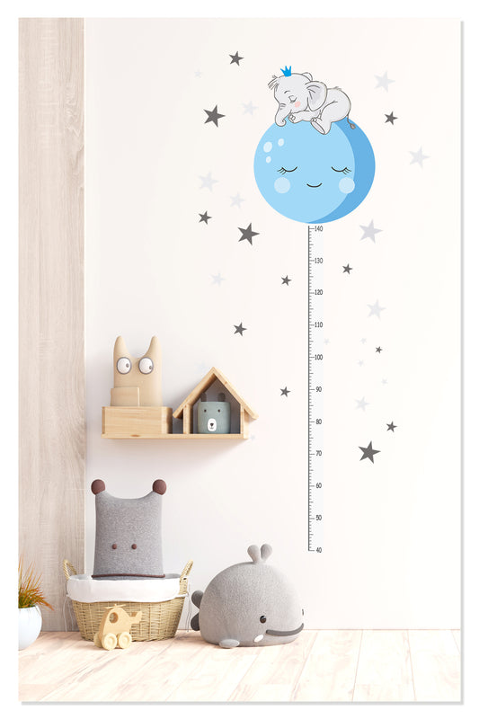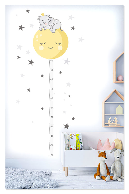 Sevimli Uyuyan Fil ve Ay Boy Ölçer Çocuk Odası Duvar Sticker