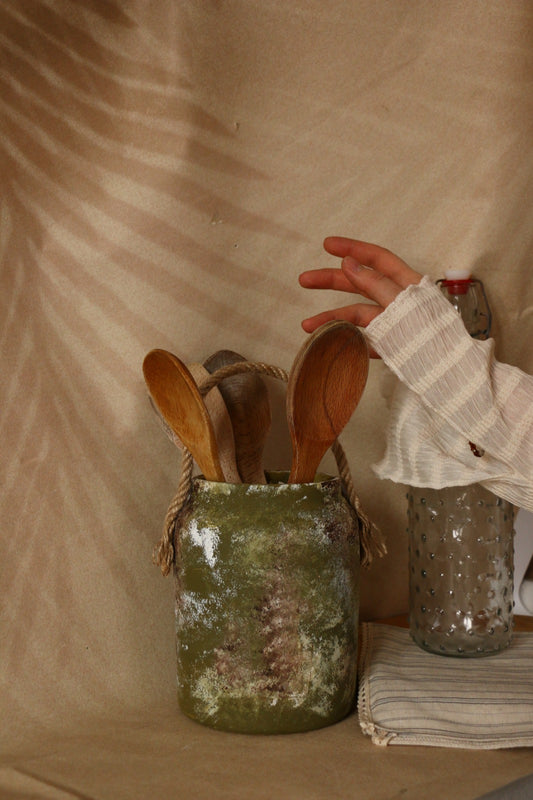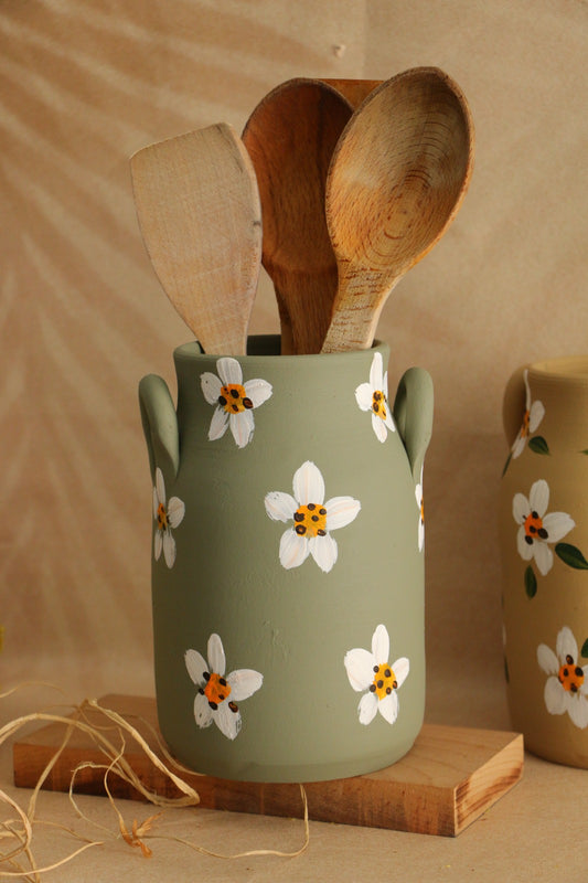 Hoyatap El Yapımı Retro Yeşil Papatya Desenli Vintage Kulplu Dekoratif Kaşıklık & Vazo ürününün kopyası