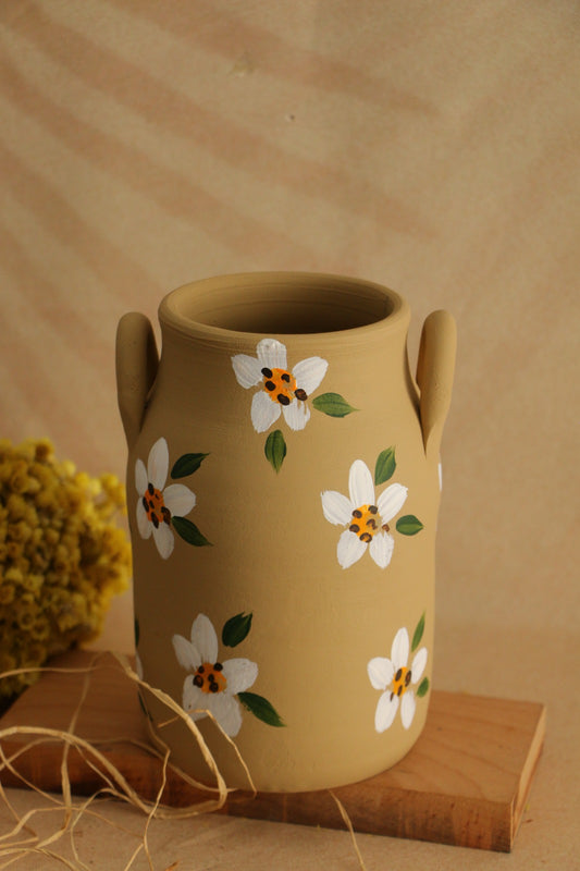 Hoyatap El Yapımı Retro Bej Papatya Desenli Vintage Kulplu Dekoratif Kaşıklık & Vazo ürününün kopyası ürününün kopyası