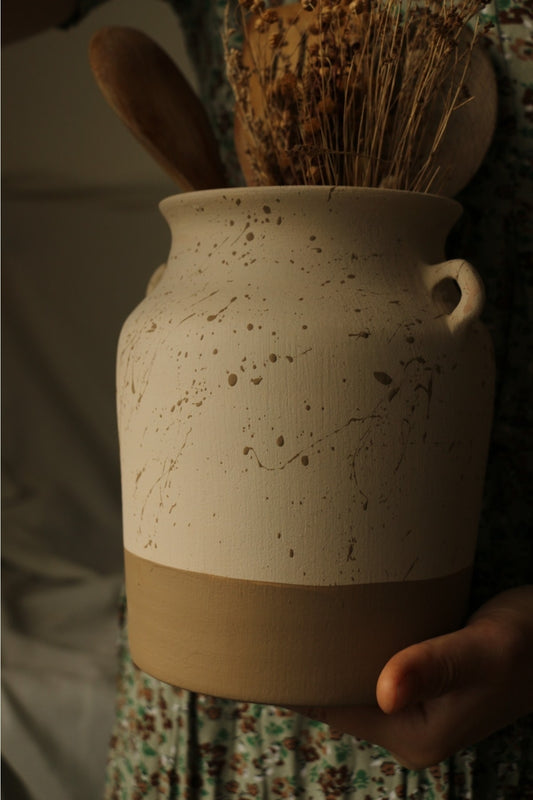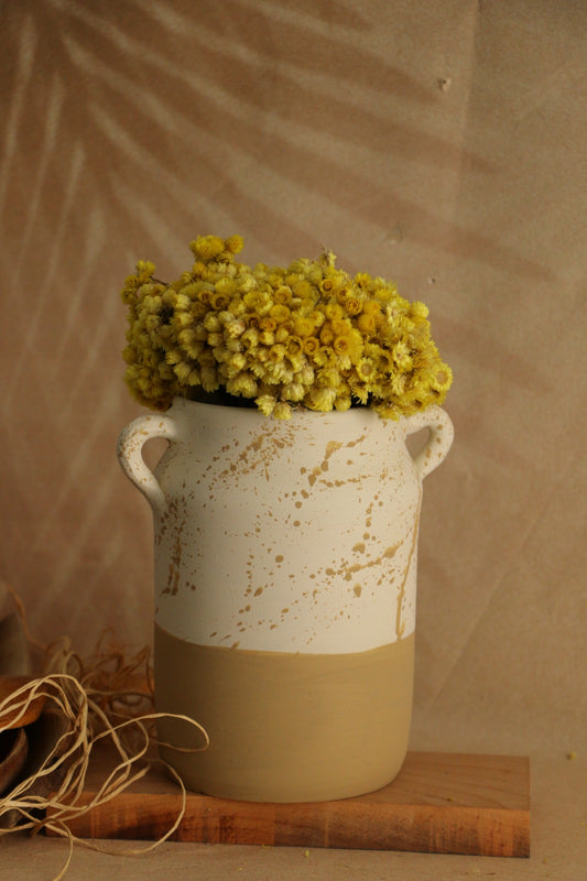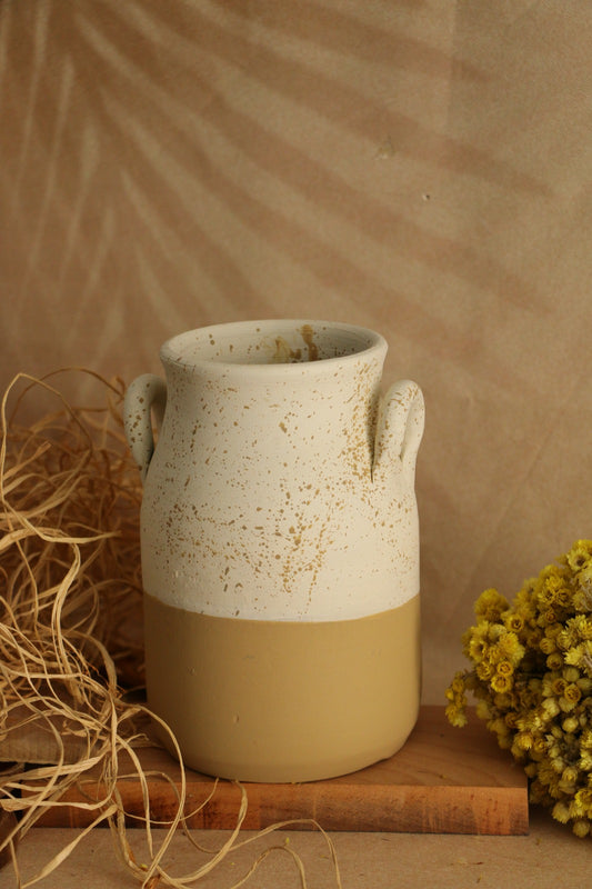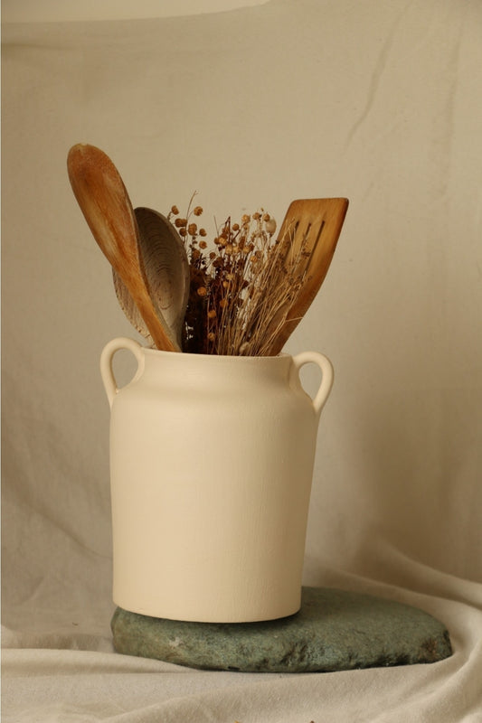 Hoyatap El Yapımı Krem Renk Sade Kulplu Seramik Vazo /Kaşıklık