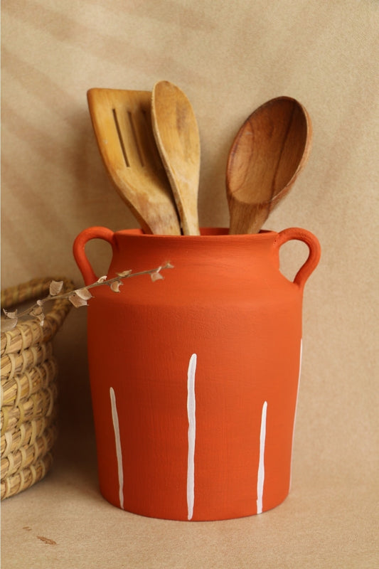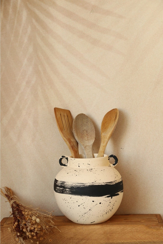 Hoyatap El Yapımı Çizgili Kulplu Seramik Büyük Vazo / Kaşıklık