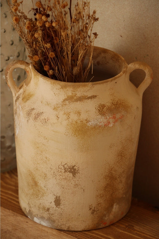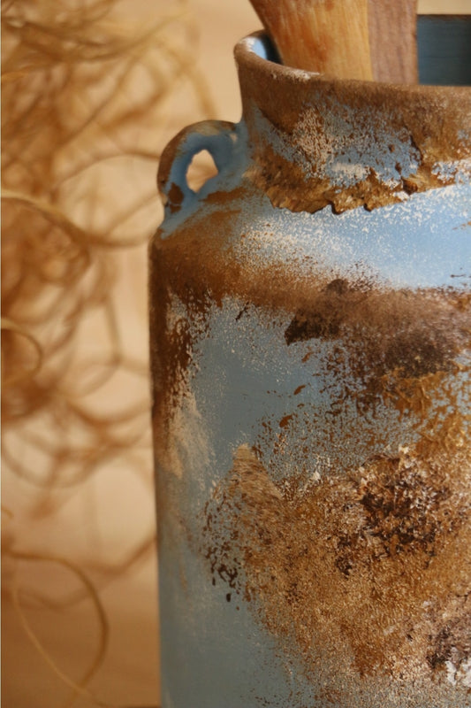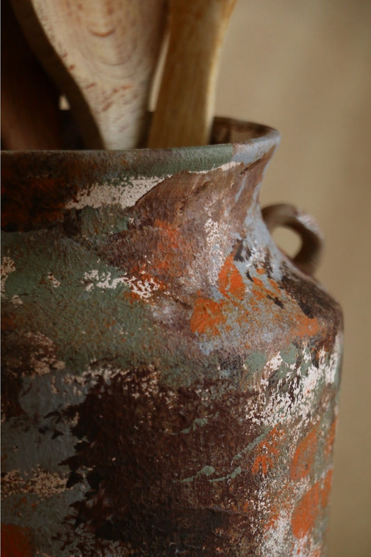 Hoyatap Eskitme El Yapımı Kulplu Seramik Vazo / Kaşıklık