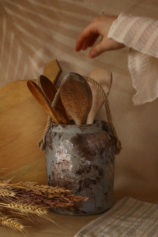 Hoyatap El Yapımı Eskitme Metal Görünümlü Kulplu Kaşıklık/Vazo