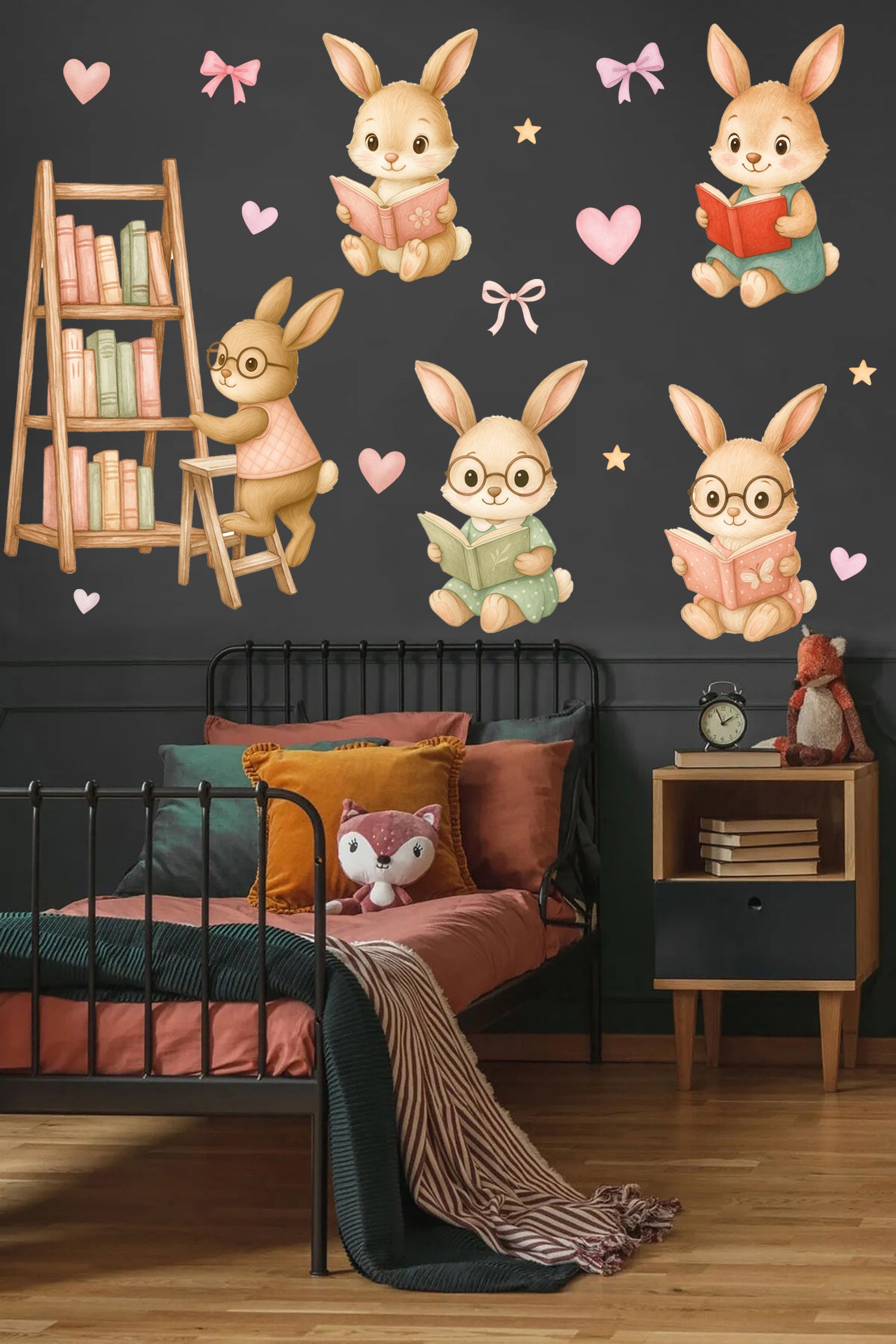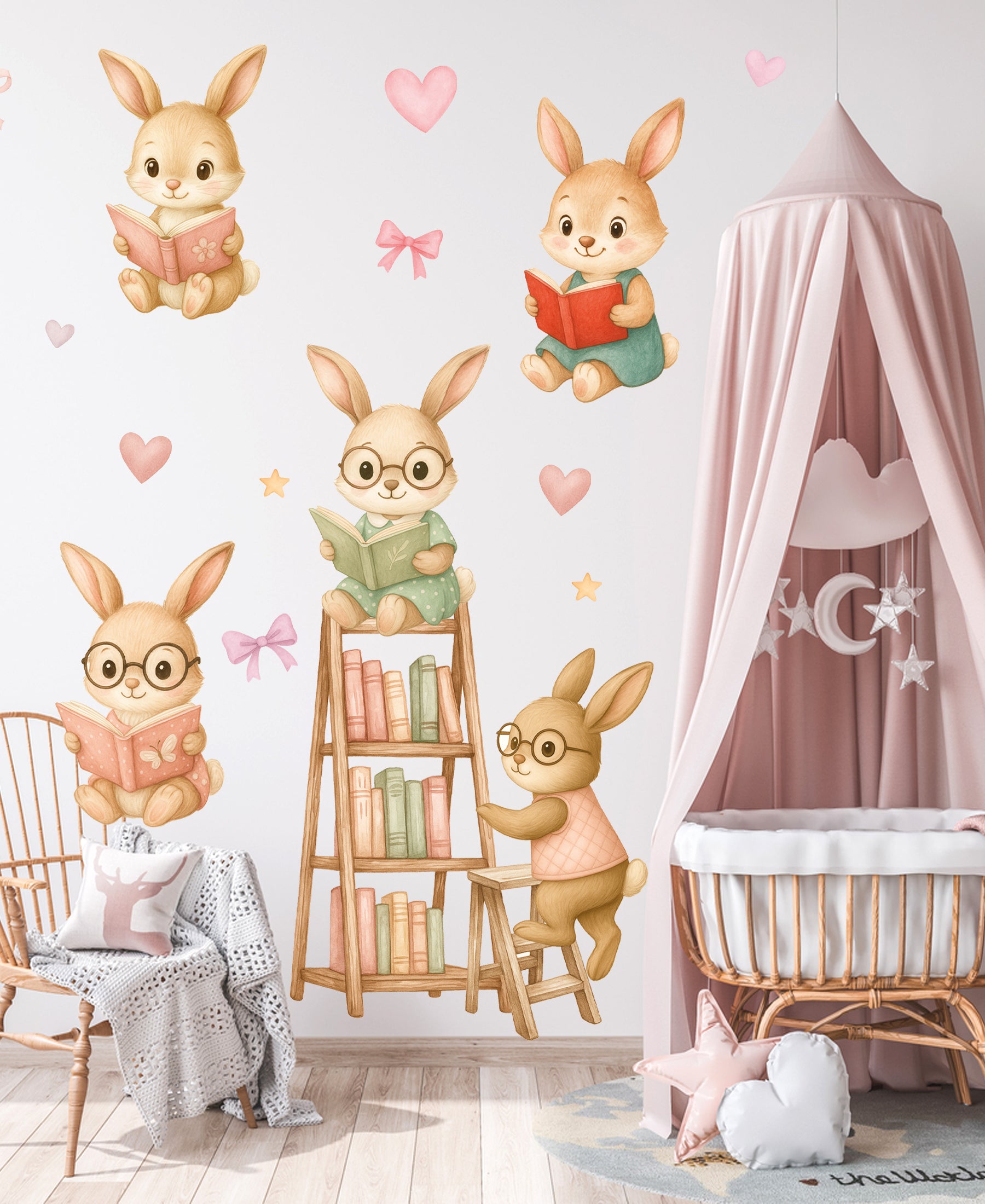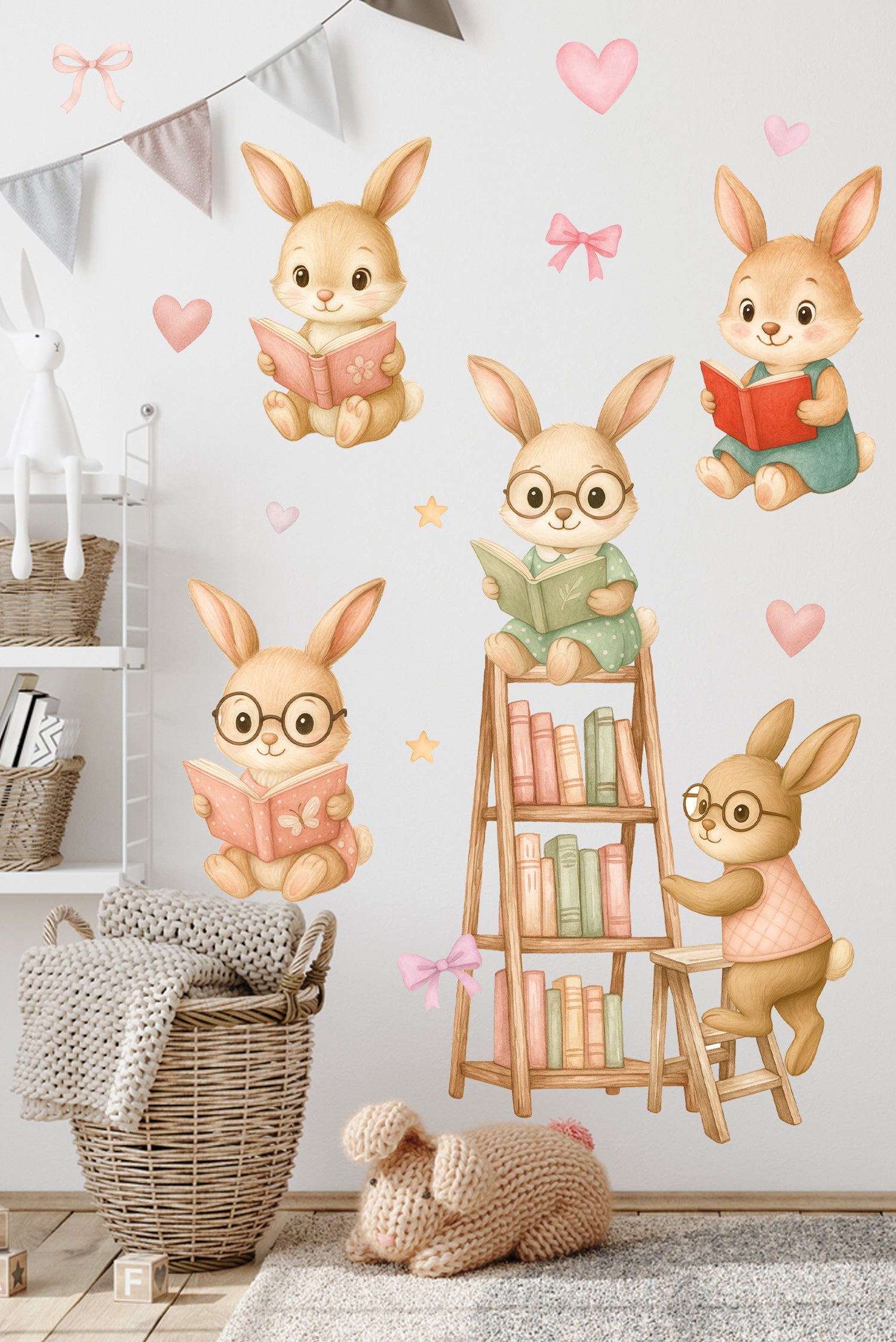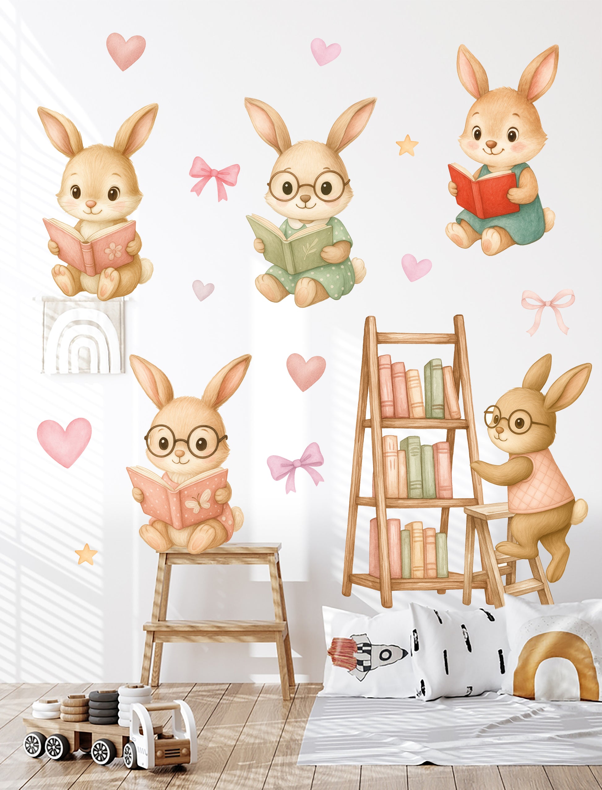Okuma Zamanı Sevimli Tavşanlar Sulu Boya Çocuk Odası Duvar Sticker Seti